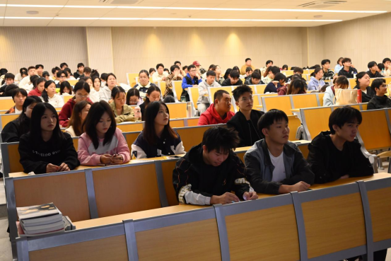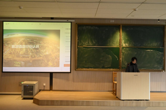 随后,香格里拉酒店集团人力资源部经理王宁上台,为在场的师生们带来了一场精彩的行业分享。他详细介绍了香格里拉酒店集团的发展历程、企业文化以及在全球范围内的布局情况。王宁特别强调,集团一直致力于培养具有国际化视野、专业技能扎实、服务意识强的复合型人才,并分享了集团在员工培训、职业发展路径及福利待遇等方面的独特优势。此外,他还就同学们关心的职业发展问题进行了耐心解答,鼓励大家勇于追求梦想,积极投身酒店行业。