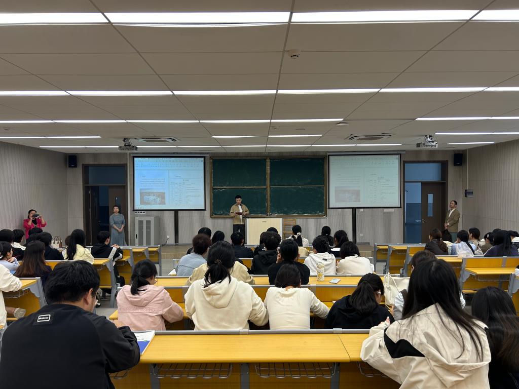 招聘会上,田女士详细介绍了上海中油阳光大酒店的发展历程、企业文化及人才需求。该酒店此次计划招聘前台接待、客房服务、餐饮管理、市场营销等岗位人员,特别青睐具备文旅专业背景、服务意识强的毕业生。公司党总支副书记熊韬在致辞中强调,此次专场招聘会是公司推动产教融合的重要举措,希望同学们把握机会,展现专业素养,鼓励毕业生积极投递简历,争取优质就业岗位。
