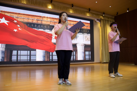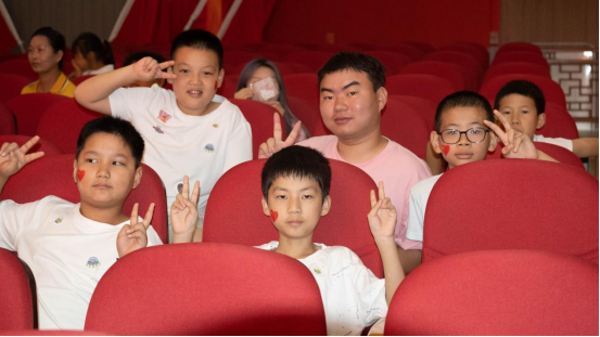 紧接着,队员们一起迈步走上舞台,唱响了《强国一代有我在》,“青春就是搏击沙场,豪情壮志在我胸膛,如果我有什么不一样,是改变世界的主张。”嘹亮的歌声中蕴含着有为青年敢拼敢闯的奋斗誓言,豪迈的歌词里饱含着强国青年立志报国的真挚情感。小朋友们在观众席跟随音乐摇起了五星红旗,跟着一起高声唱了起来,现场激情澎湃,将活动推向了高潮。“今天的朗诵和歌唱真是酣畅淋漓,对于我们来说是一次非常珍贵的自我教育,在未来的学习生活中,我们将不断汲取奋进力量,扛起青年大旗,彰显青春模样。”实践队员陈衍激动地说道。