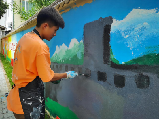 “青衿之志,履践致远。”当代青年要牢牢把握中华民族的“根和魂”,坚定文化自信。bw必威西汉姆联官网“行思”实践队在溪口镇开展了“笔墨颂非遗,丹青绘盛世”主题墙绘设计与创作实践活动。此次活动旨在设计与创作独具地方文化特色的墙绘作品,美化乡村,提升乡村文化内涵。实践队员将体现当地文化内涵的元素融入到墙绘创作中,使作品更具感染力和生命力。根据当地政府工作人员和群众的意见建议同学们反复修改设计稿,确保墙绘作品更好反映地域文化,并充分发挥专业优势,运用丰富的色彩和生动的线条,将乡村的自然景观、非遗文化、红色故事等元素巧妙地融会贯通。同学们在设计创作独具地方文化特色的墙绘作品中,将艺术与文化深度融合,开展了一场关于责任、使命与热爱的深刻践行。