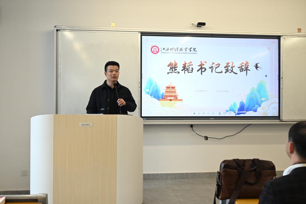 活动伊始熊韬对本次活动进行了致辞,他表示文化是一个民族的灵魂,而家乡文化更是一个地方的独特标识与精神根基。无论是乡音、美食、建筑还是艺术作品,都是每个当地人最值得骄傲和自豪的文化符号。熊韬鼓励每一位同学常怀对家乡的“文化自信”,热爱家乡的文化、精神和品质,在今后的学习和生活中应当积极参与社会实践,持续深入了解家乡文化,以实际行动传承和发扬家乡文化,让家乡优秀传统文化在新时代焕发出更加绚丽的光彩。