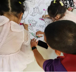 志愿者带着小朋友们开展了丰富多彩的趣味活动,引导小朋友们签到并领取积分卡,陪小朋友画画,组织跳绳活动,以生动活泼的形式普及生活安全知识等。