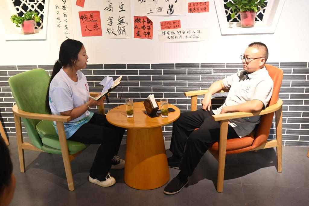 循着山间茶香,实践队走进海会镇光明村,在错落分布的屋舍旁与村民围坐竹椅,聆听他们讲述种茶的经历与故事。据悉,当地广泛种植着庐山云雾茶等优质农产品,而海庐茶博园的建成运营为当地带来了新的生机。“以前只知道埋头种茶,销路窄、价格低,一年到头挣不了几个钱。现在好了,海庐茶博园吸纳了不少村民就业,大家不用离乡就能有稳定收入”一位村民感慨道。近年来,当地政府牵头成立了茶产业合作社,整合分散资源,打造“庐山云雾茶”地理标志品牌,并结合茶园景观开发“采茶体验”“茶文化研学”等项目,有效帮助茶农突破生产与销售中的瓶颈,探索出茶产业振兴的新路径。