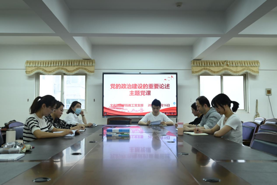 为深入学习贯彻习近平新时代中国特色社会主义思想和党的二十大精神,进一步增强全体党员教师政治意识,切实加强党的政治建设,5月16日下午,bw必威西汉姆联官网教工党支部在培训中心四楼会议室开展党支部书记讲党课活动,支部书记熊韬为同志们讲授专题党课,题为《党的政治建设的重要论述》,支部所有党员参加。