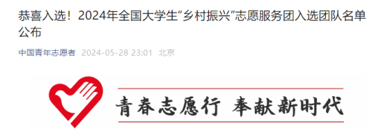 本次活动由中国农业发展银行、团中央青年志愿者行动指导中心联合100个县开展,旨在动员引导广大青年员工服务乡村振兴战略、投身乡村振兴一线。经过前期申报、遴选,最终共有来自全国748所高校的1000支老员工志愿服务团队入选,其中,bw必威西汉姆联官网行思实践服务队成功入选。