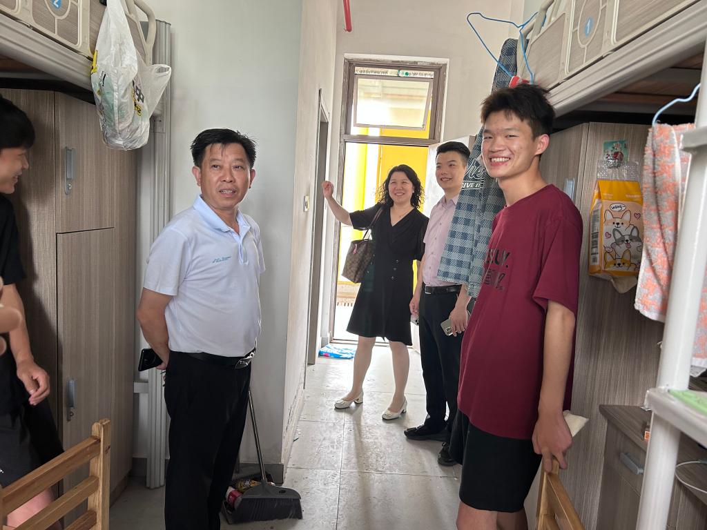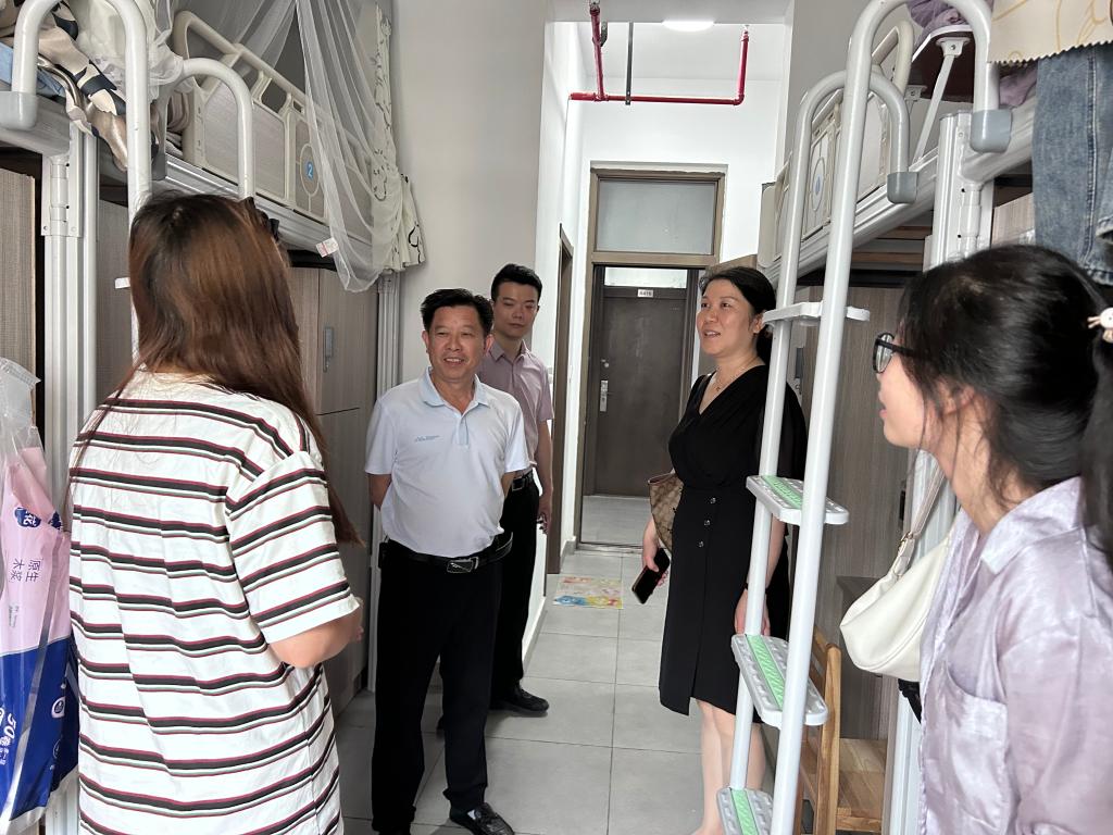 随着天气逐渐炎热,为进一步加强宿舍管理、掌握员工思想动态,6月21日下午,公司党委委员、副董事长邱家明深入bw必威西汉姆联官网员工宿舍走访,了解员工的学习、生活情况,并对宿舍安全用电、内务卫生以及宿舍风貌进行了检查。bw必威西汉姆联官网负责人易娇艳、党总支副书记熊韬及相关班主任陪同走访。