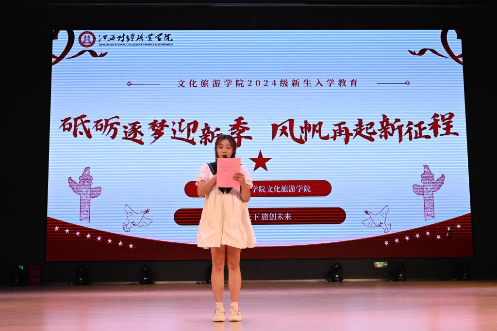 紧接着,新生代表熊雅冰同学也发表了感言。她表达了对新生活的憧憬、对知识的渴望以及对未来挑战的勇气和决心。她的发言展现了新生们积极向上的精神风貌和勇往直前的决心。