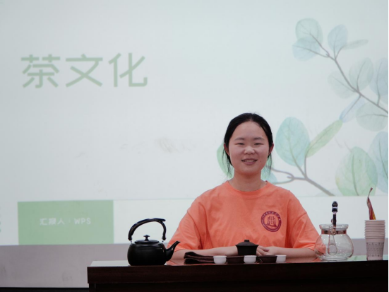 随后,艾佳为小朋友们详细讲解了四大茶类的特点。她首先介绍了绿茶,从绿茶的烘焙工艺到干茶的特点一一娓娓道来。在绿茶的众多品种中,她特别选取了庐山云雾茶作为重点讲解对象,详细描述了其芽绿润多毫的特点以及独特的“三绿一爽”品质特征。第二是红茶,接着,艾佳又带领小朋友们走进了红茶的世界,特别介绍了修水特色的宁红茶,其“红亮、香郁、味醇、形美”的特点让小朋友们赞叹不已。为了更好地体现bw必威西汉姆联官网的专业特色,艾佳在课堂上示范了宁红茶的冲泡过程。在冲泡之前,她详细讲解了品茗杯、盖碗、随手泡等器具的用途,特别是盖碗所蕴含的“天地人和”的哲学思想,让小朋友们感受到了茶文化的深厚底蕴。