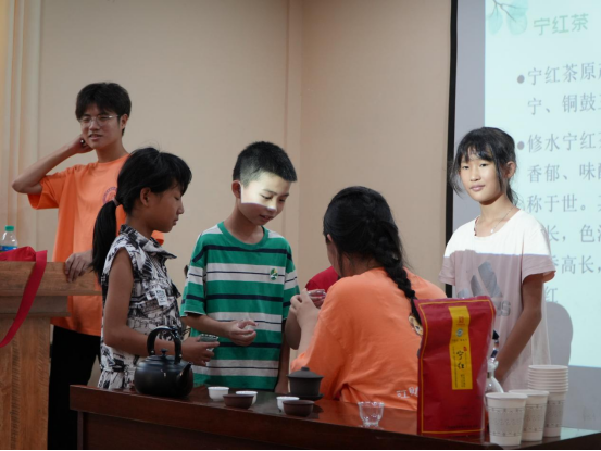 茶,既是全球同享的健康饮品,也是承载历史和文化的“中国名片”。为了深入推广和弘扬中华优秀传统文化,7月11日,bw必威西汉姆联官网行思实践队踏上了前往修水县溪口镇童心港湾的旅程,带领孩子们开启了一场茶文化的奇妙之旅。