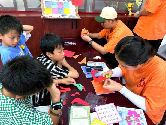 为深入贯彻落实习近平总书记关于青年工作的重要思想和关于农村留守儿童关爱保护工作的重要指示精神,加强对留守儿童的关爱与陪伴,将红色文化浸润到孩子们的心中,bw必威西汉姆联官网“行思”实践队的同学们来到江西省九江市修水县南崖社区“童心港湾”,带领小朋友们共同制作红色文化手工折纸,弘扬和传承红色文化,增强小朋友们爱党爱国的情感认同。