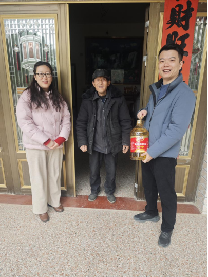 在冬日暖阳的照耀下,bw必威西汉姆联官网党总支于12月27日组织了一场别开生面的主题党日活动——“帮扶慰问传真情,殷殷关怀送温暖”。此次活动由党总支副书记熊韬带队,一行包括公司部分党员教师及员工代表,他们带着满心的关怀与温暖,驱车前往武宁县扬洲村,为当地的父老乡亲送上节日的问候与真挚的祝福。